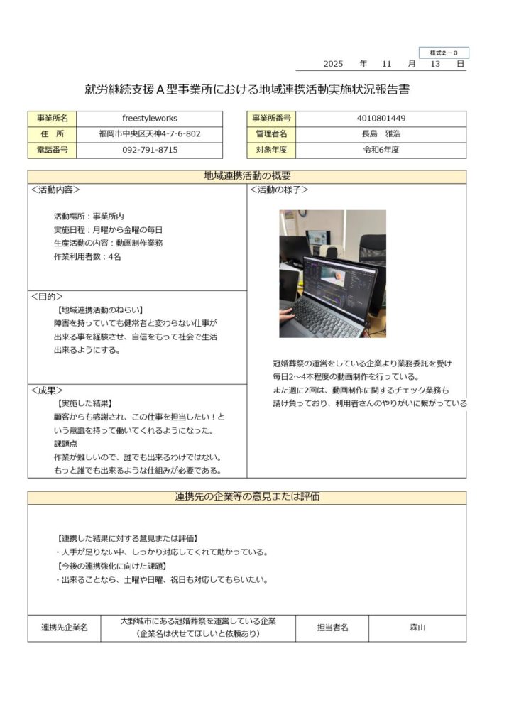 福岡市中央区天神の障がい者就労継続支援A型事業所 FreestyleWorks天神